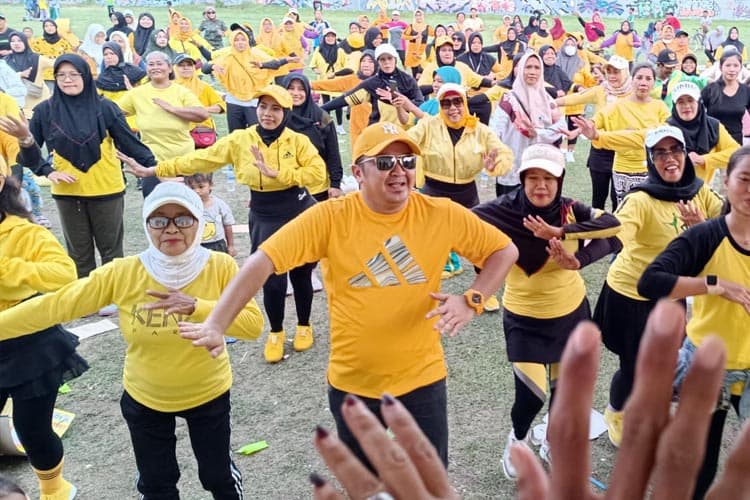 Usai senam Mas Yuda juga mensosialisasikan bagaimana saat tanggal 14 Februari 2024 mencoblos Adies Kadir, Adam Rusydi dan Kurniawan Yuda.